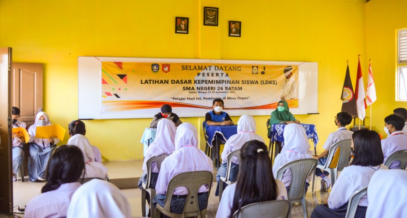 Hari Sabtu-Minggu pada tanggal 25-26 September 2021, SMA Negeri 26 Batam mengadakan Latihan Dasar Kepemimpinan Siswa (LDKS) bagi calon pengurus OSIS 2021, bertempatan di sekolah. LDK pada tahun ini merupakan awal terselenggaranya di SMA Negeri 26 Batam dan ini merupakan program tahunan yang wajib diikuti oleh semua peserta calon pengurus OSIS. .Hari Sabtu-Minggu pada tanggal 25-26 September 2021, SMA Negeri 26 Batam mengadakan Latihan Dasar Kepemimpinan Siswa (LDKS) bagi calon pengurus OSIS 2021, bertempatan di sekolah. LDK pada tahun ini merupakan awal terselenggaranya di SMA Negeri 26 Batam dan ini merupakan program tahunan yang wajib diikuti oleh semua peserta calon pengurus OSIS. .